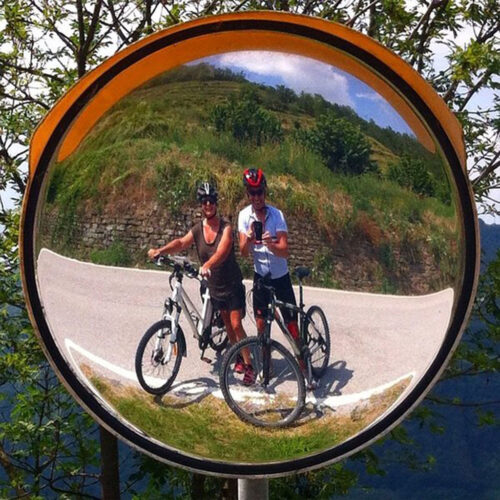 Een stadsfietser en een geoefend wielrenner samen op fietsvakantie, als dat maar goed gaat… Met de fietsen van Aad en Esther was het mogelijk. Fred op de mountainbike, Edith op de e-bike, geen heuvel was ons te hoog. De vraag naar een mountainbike zonder ondersteuning had Aad nog niet eerder gehad, maar hij had voor Fred een prima fiets geregeld. Het was fijn te ervaren dat we met een totaal andere fietsachtergrond dezelfde beleving konden hebben. Zonder tijdsdruk, hier en daar stoppend om een dorpje te verkennen, te eten of een foto te maken, reden we de route van die dag, waarna onze bagage na aankomst alweer op ons stond te wachten.