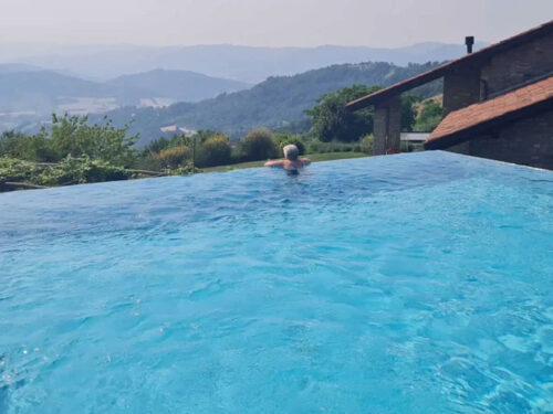 Het was in een woord prachtig, van dag 1 t/m 7 waren perfect geregeld. Prachtige routes, fantastische onderkomens, echt luxe allemaal, heerlijke zwembaden wat zo fantastisch was met die hitte. Mocht er onderweg wat gebeuren dan is Aad er altijd ter ondersteuning, als opvang, als vraagbaak en dat gaf een heel veilig en vertrouwd gevoel je bent tenslotte wel, voor ons althans, in een vreemd land. De routes die op Komoot zijn gezet waren perfect echt heel fijn om mee te fietsen, alle info kun je daarop aflezen.